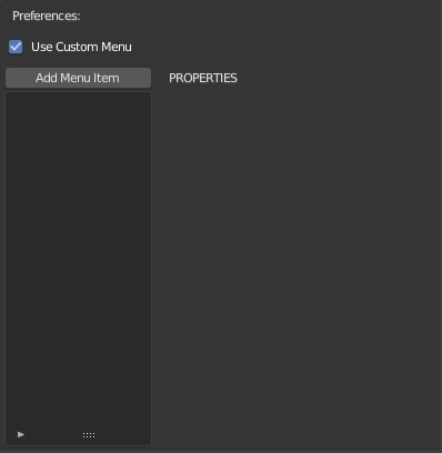 In the add-on preferences you can define your own menu by selecting the checkbox ‘Use Custom Menu’.