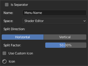 - Use Custom Icon – This allows you to specify a different icon. Blender ships with different icons. These can be found in an add-on called. “Icon Viewer”. With that add-on enabled in the preferences you can select the Icon Viewer Button to see a list of all of the icons. If you select one of these icons the name of the icon will be copied to your clip board you can use ctrl + V to paste it into the “Icon Name” field.
