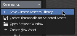 Select the category you want to save the asset to, then in the commands drop down menu, select Save Current Asset to Library.